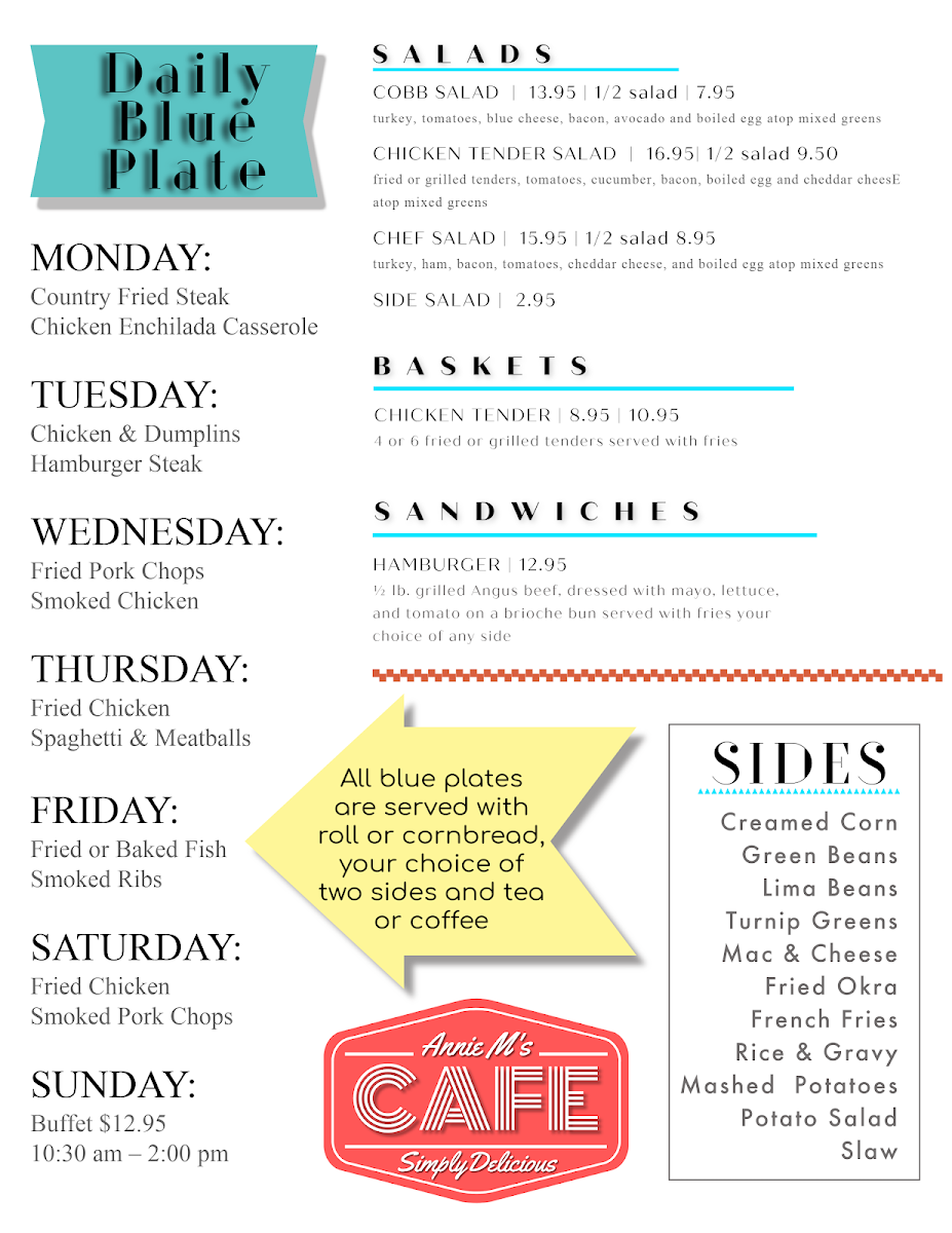 If you're ever in the mood for a cozy, inviting spot to enjoy a delicious meal, look no further than Annie M'S Cafe. Located at 740 US 49 Suite A, Flora, MS, this charming café is known for its flavorful menu that caters to a variety of tastes. From comforting breakfast options to satisfying lunch dishes, Annie M'S Cafe Menu offers something for everyone. Whether you're craving a hearty plate of eggs and bacon to start your day or a fresh sandwich to enjoy with a hot cup of coffee, this café has got you covered. The atmosphere is relaxed, making it a great place to unwind with friends, family, or even solo. With each dish made with care and served with a smile, it’s no wonder locals keep coming back for more.