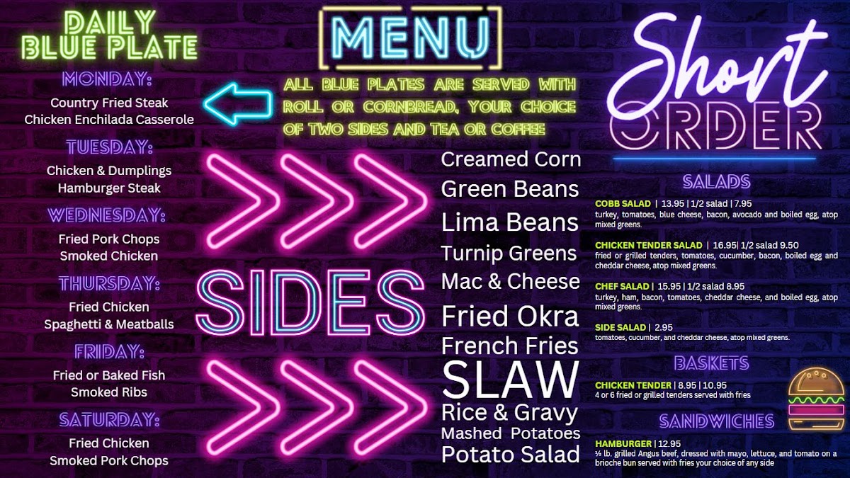 Home Cooking nighttime menu.